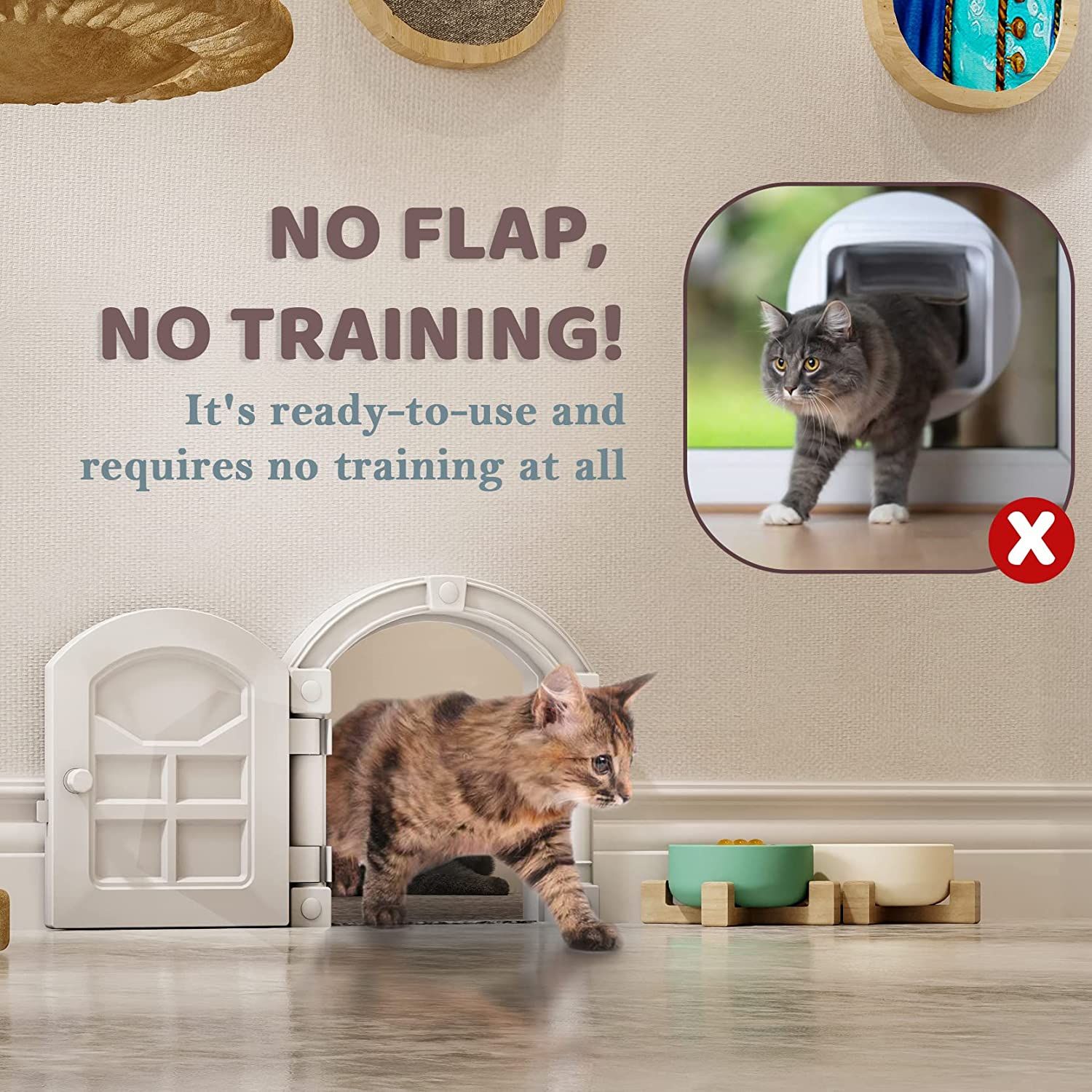 3.Our Interior Cat door can be automatically fixed when opened at 180 degrees, without the need to install other fixed accessories. And the cat doesn't need training to use it, and best of all, it won't hurt your cat the same way the flip cat door does, and it won't annoy you with that annoying flip noise.