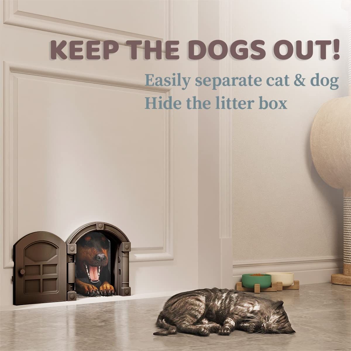 1.cat door protects your cat's privacy in the most adorable way, allowing your cat to have a private space without light penetration at night. Separate the litter box from the dog.