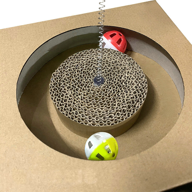 The cat scratcher toy provides a safe place for cat exercise and scratching.