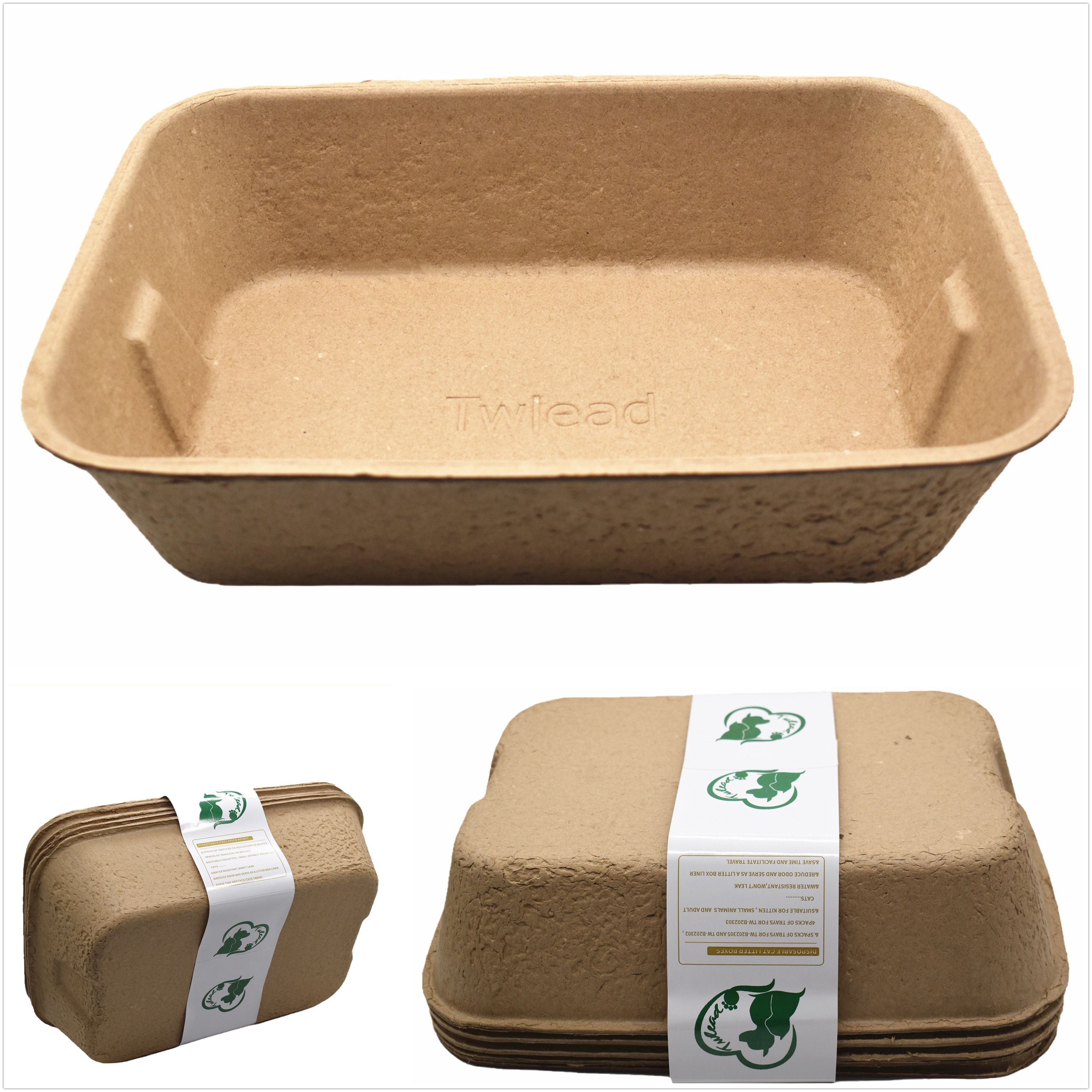 2.Great for the environment The disposable cat litter box is made from 100% recycle paper.with this in mind, you can feel guilt-free in throwing away the box when a fresh box is needed or when you traveling.