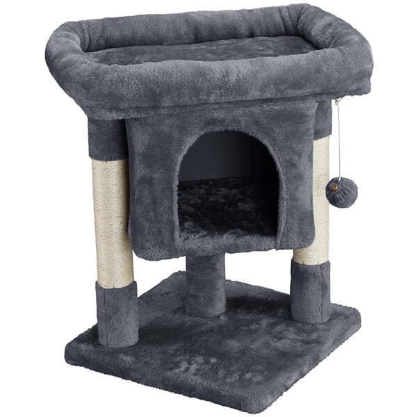 2-Level Cat Tree Condo Tower with Plush Perch;  Dark Gray 2-Level Cat Tree Condo Tower with Plush Perch;  Dark Gray 2-Level Cat Tree Condo Tower with Plush Perch;  Dark Gray