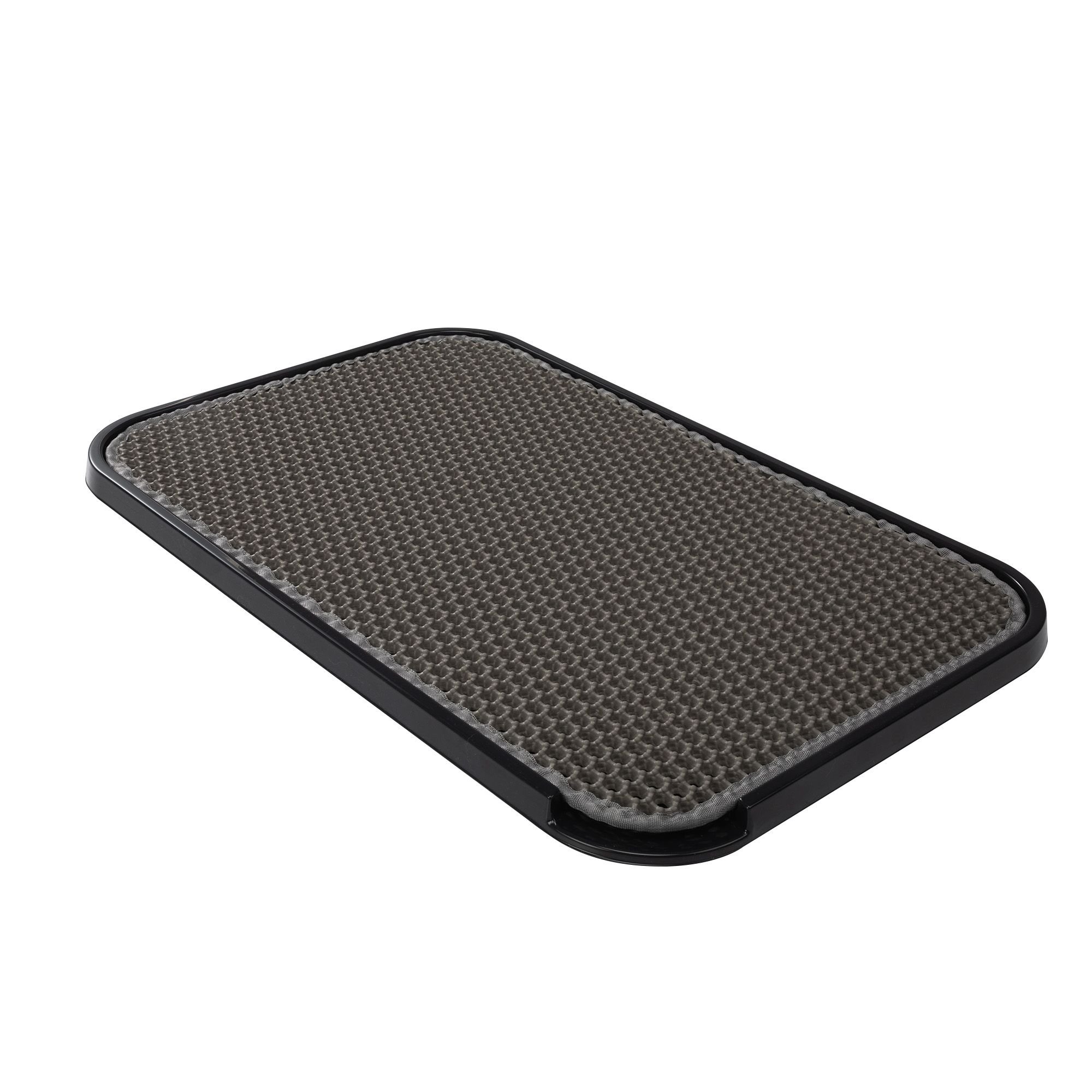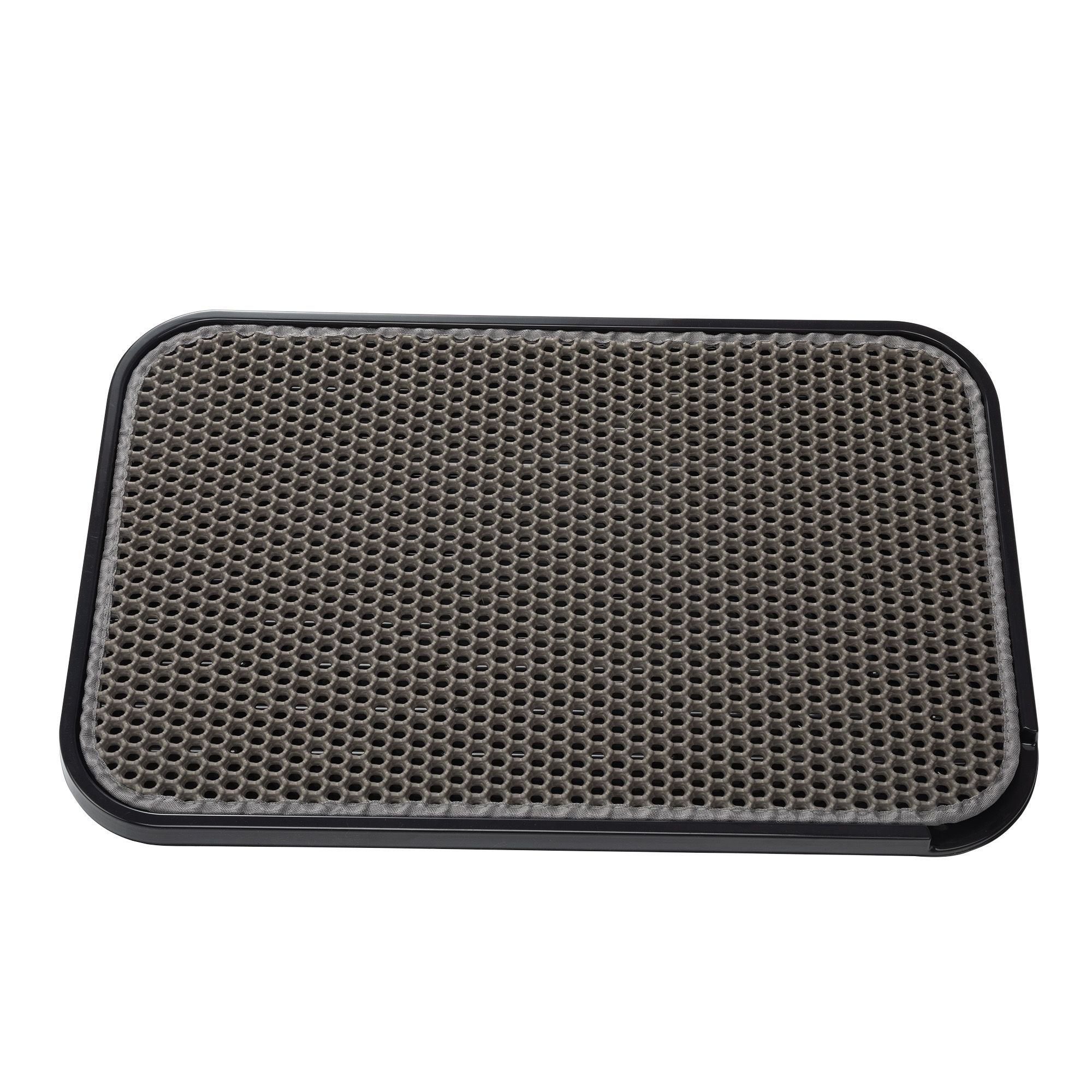 [Comfortable edge and non-slip] : The design of the surrounding edge is not only beautiful, but also prevents the cat litter mat from sliding during use. Nine black EVA anti-slip pads are attached to the bottom to enhance the stability of the mat and ensure the safety of the cat when using it.