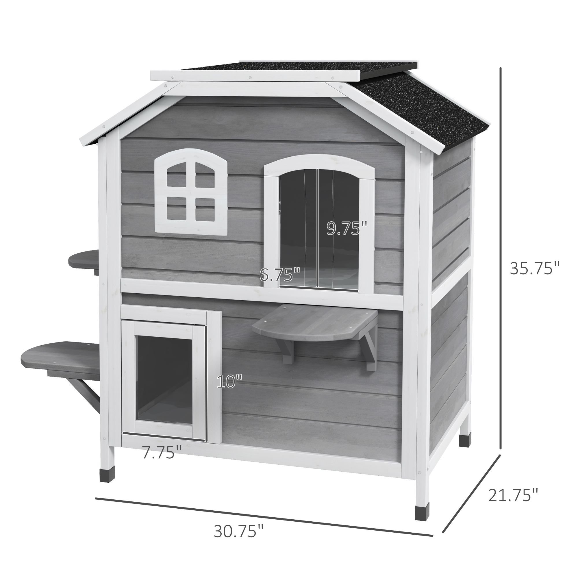 Home > Wooden 2-Story Outdoor Cat House, Feral Cat Shelter Kitten Condo with Escape Door, Openable Asphalt Roof and 4 Platforms, Grey